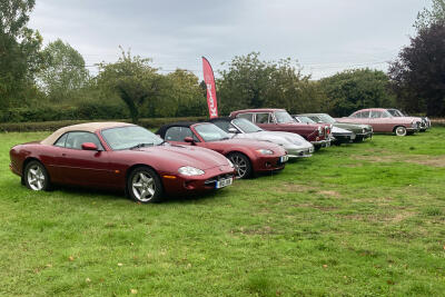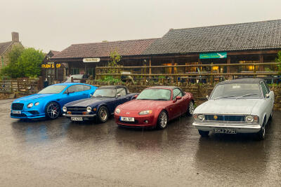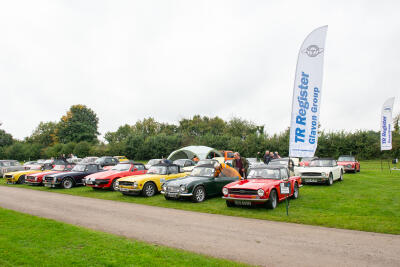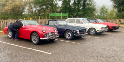 A good turnout despite the weather, hence hoods temporarily flipped up to keep seats dry whilst park...